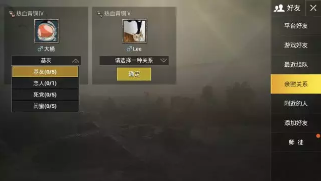 在中,好友系统更新后更加完备,加入的亲密关系系统拉近了玩家间的感情。但是很多玩家反馈亲密关系设置不了,这是什么原因呢,其次也有玩家疑问,自己把别人设置为某种亲密关系,别人看得到吗?绝地求生刺激战场亲密