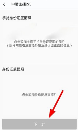 3、然后上传手持身份证正面照和身份证反面照,点击下一步,如下图: