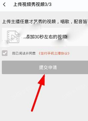 4、然后上传30秒左右的视频,点击“提交申请”,申请通过后就可以开始直播了,如下图: