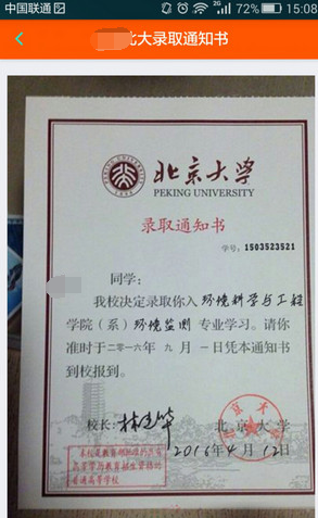 第四步:制作成功,把你的北大录取通知书分享到你微信朋友圈吧!