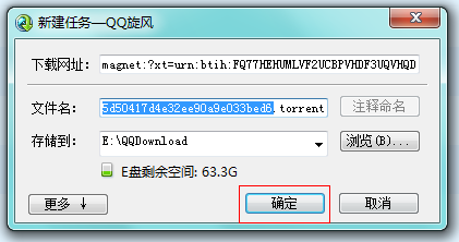 1. 点击磁力链链接,QQ旋风弹出新建任务框,开始磁力链任务下载。