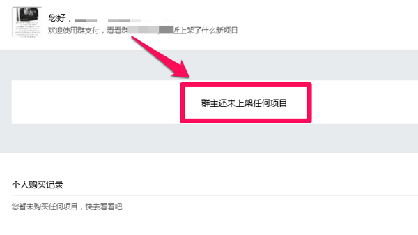 3、如果所在群群主未上传任何出卖的物品是没有办法进行购买的,进入以后里面为空。
