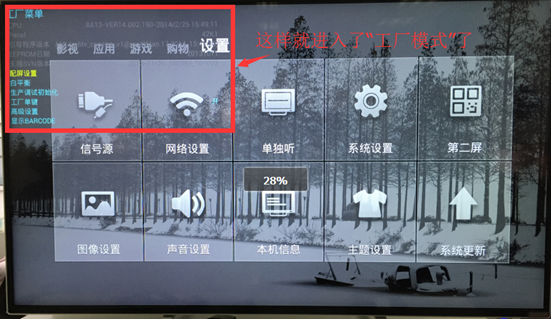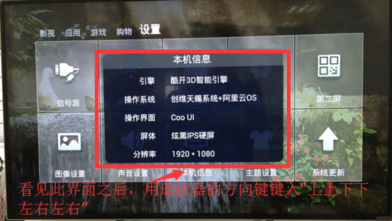 2、显示下图的界面之后,用遥控器方向键键入“上上下下左右左右”,注意:不是“上上下下左左右右”哦