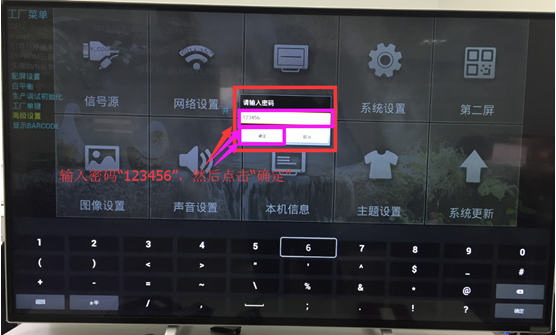 电视机型号:42K1、42K1T、42K1Y、42K1TY、55K1、55K1T的工厂菜单的高级设置内可打开ADB开关,输入密码“123456”即可入内。