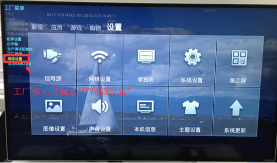 电视机型号:40U1、58U1的工厂菜单内没有与ADB相关的选项,但据说到2014年2月的固件后会自动打开。