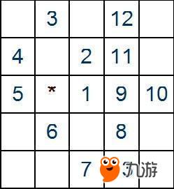 *号为电脑先走的地方。无论他第一步走在哪里,只要按照下面数字顺序走即可: