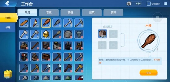 作为初入游戏的萌新,你只需要消耗原木块材料,就可以拥有自己的第一把武器啦!