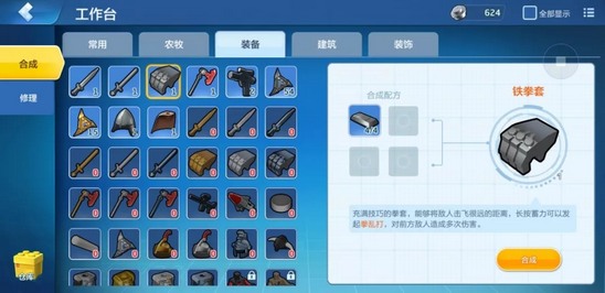 铁拳套:在工作台制作,需要消耗4个铁锭。