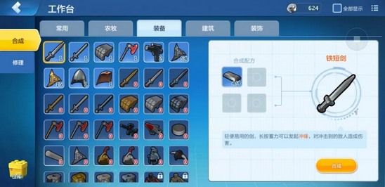 铁短剑:在工作台制作,需要消耗4个铁锭