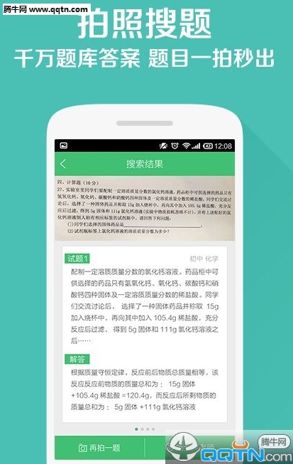 拍照:作业一拍,答案秒出;数学、英语、语文、物理、化学等各科难题一网打尽!千万题库等你来搜。
