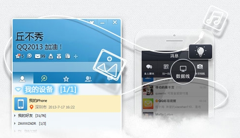 一、QQ数据线抛离传统USB传输:用户只要登录电脑,点击QQ面板上“我的设备”分组,即可将电脑上的文件火速传到你选择的移动端,该功能在手机QQ上也一样可以传文件到电脑端。用户不再需要被数据线束缚,轻松地实现各终端的文件传输。