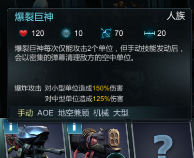 全能器和爆裂巨神,属于前期战术被克制下,敌方空军肆虐的补救兵种,面对人族制空流,如果前期我方部署过多地面部队,空军数量被压制,爆裂巨神能很好的补救一些,面对神族的隐形兵种加灵鹫制空,侦察机被歼灭后导致“失明”状态,可以放弃制空,用全能攻城器来反隐,同时不浪费战力过多在对空上,至于防空鉄鸡这个位置是可以凭兴趣更换,我选择它主要是我个人更偏向地面部队,前期应对空军奇兵,防空鉄鸡挺不错。