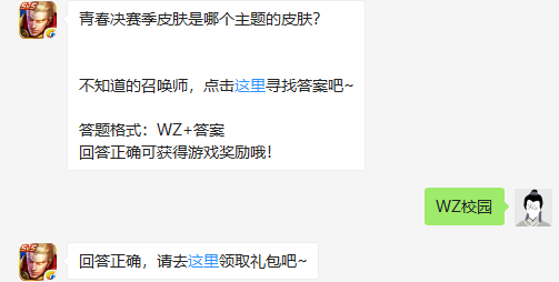 春决赛季皮肤是哪个主题的皮肤?不知道的召唤师,点击寻找答案吧~格式:WZ+答案回答正确可获得游戏奖励哦!又到了每天的王者荣耀每日一题时间了,今天给玩家带来的是王者荣耀花木兰新皮肤原画的问题,很多玩家都听过花木兰要出新皮肤了,但是花木兰新皮肤青春决赛季皮肤是哪个主题的皮肤?很多玩家就不是特别了解了。今天小编便给大家带来王者荣耀青春决赛季皮肤是哪个主题的皮肤的问题的回答,一起来看看吧。