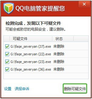 点击“删除可疑文件”即可解除风险: