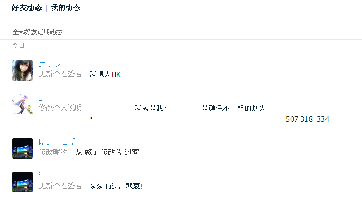 查询好友帐号近期动态(包括签名更新和昵称修改)的方法非常,只需要登录 就可以查询得到,进入后记得登录你的QQ帐号哦,在“好友动态”下显示的是当前QQ好友最新更新的动态信息;而进入“我的动态”则可以看到自己的签名和昵称的历史修改记录。