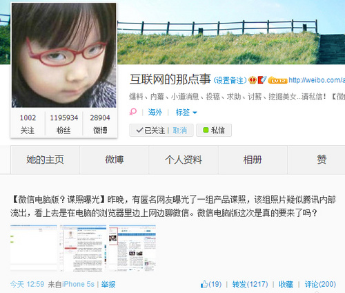 微信最初仅有移动客户端版本,但随后在用户的强烈要求下,微信也推出了电脑客户端版本。但不得不说,微信网页版客户端的设计相当,功能也非常少。而近日,据“@互联网那些事”爆料,微信将推出新的PC版微信。