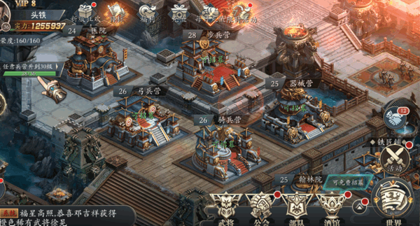 兵营达到10级之后就可以在主城中建造训练场,在训练场中可以将低级士兵训练成高级士兵。