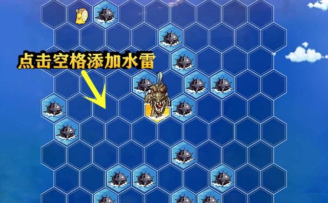 在一个类似于棋盘的海域中,会有一头海兽,每局开始这个海兽的周围会随机落下一些水雷,然后玩家可以点击周遭的空格子来添加自己的水雷,只要将这个海兽围困起来,最终无路可走被炸掉,那我们便取得了胜利。