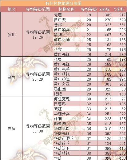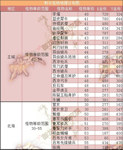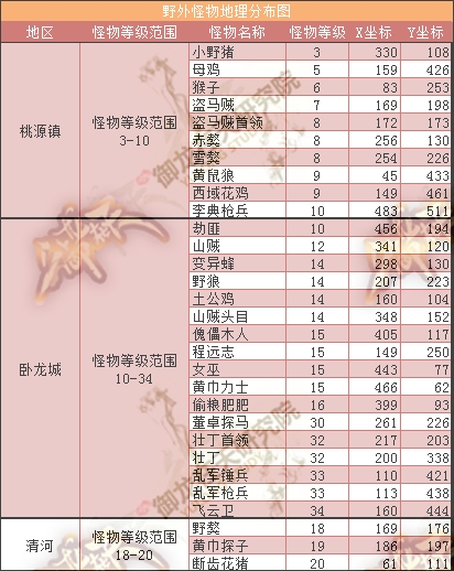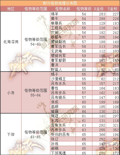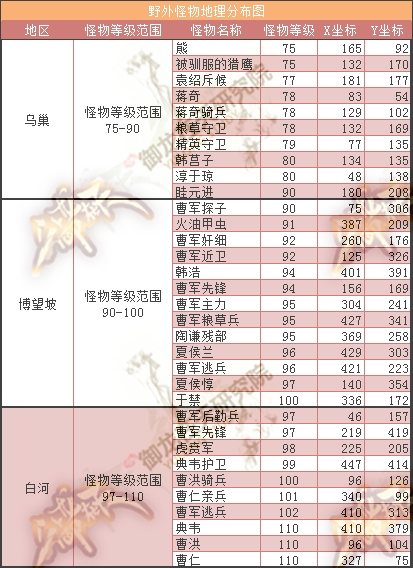 通过打野外怪物,击杀野外boss,我们可以丰富的奖励,为了帮助大家顺利找到各个地区的怪物,并且安全的打败它们,小编制作了怪物等级分布图,希望能够帮助到大家。