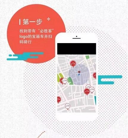 1、找到带有“必胜客”logo的宝箱车并扫码骑行;