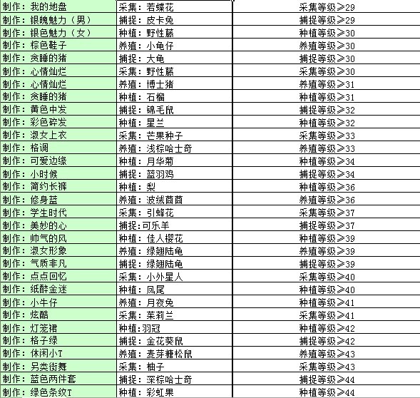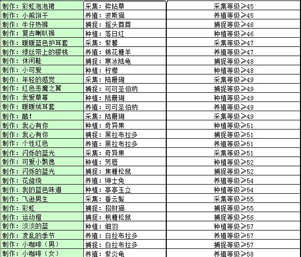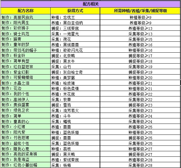 在梦境庄园中,我们要制作各种各样的服装时,需要达到相应条件,比如等级、配方等,本篇中,小编整理了1~58级的各种种植/养殖/采集/捕捉时候有几率掉落的普通、优质服装配方,按顺序来排列的,可能有些许错误,还请指出,一起来看看吧。
