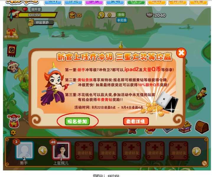 第二步:完成新引后点击游戏屏幕右侧的图标报名参加活动。