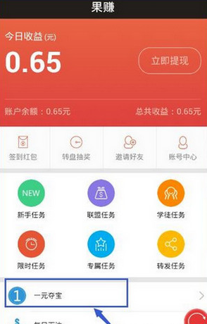 果赚不仅是一款软件,用户还可以利用闲暇时间来参与活动哦!只需支付1元钱,就有机会获得iPhone6S哦!当然啦!一元夺宝的活动纯属靠运气,如果你想尝试一下的话,就来看看本文活动流程吧!