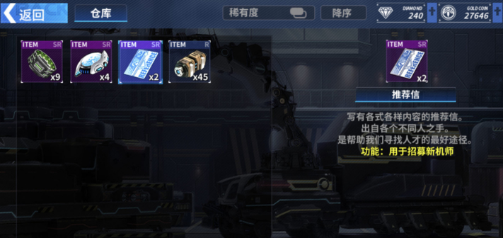 玩家最好规划好仓库的道具数量,尽量保留稀有道具给高品质机师使用,可以在后期更快提升战斗力。