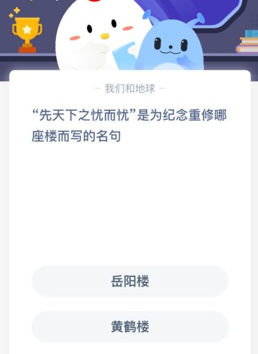 支付宝庄园小课堂6月28日的问题是,“先天下之忧而忧”是为纪念重修哪座楼而写的名句?如果你不清楚,可以看看文中的介绍。