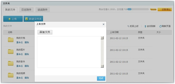 2、这是一款工具类应用,用于存储空间的日志附件、说说附件内容;支持本地上传文件、同步QQ网盘文件,上传文件类型无限制,用户可以对文件进行的管理操作,属于存储类产品。