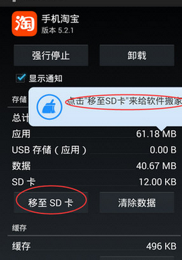 4、点击后,会出现可搬家的软件,选择点击【搬家到SD卡】,接着会提示要点击【移至SD卡】,点击移动就可以;