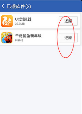 6、就会出现所以已搬家的软件,点击【还原】,同样的操作,就可以了。
