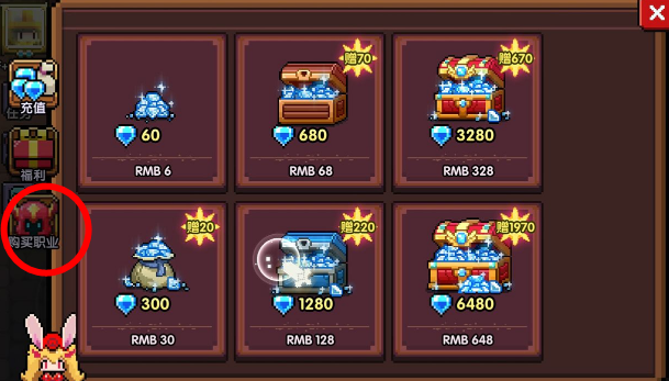 在游戏中先点击钻石就会出来这个界面,在充值的下两个就出现购买职业了,然后点一下那个购买职业就行了。