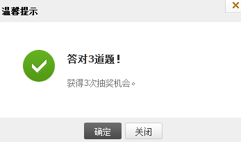 每周实测,同样是答对三题,获得了抽奖机会!