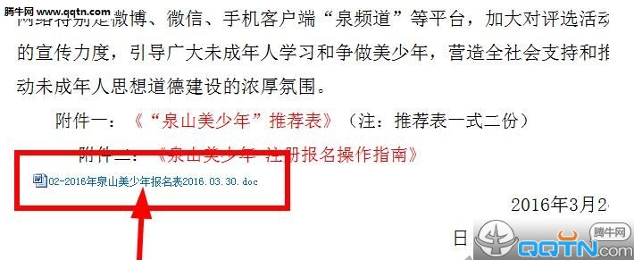 2、往下滑动,在底端,有个2015年泉山美少年报名表,点击下载报名申请就可以的哟~