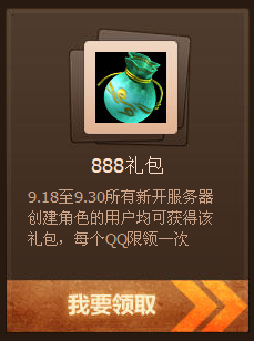 9月18日到9月30日,所有新开服务器创建的用户均可获得该礼包,每个QQ限领一次。