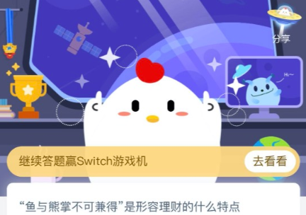 小鸡宝宝考考你,鱼与熊掌不可兼得是形容理财的什么特点
