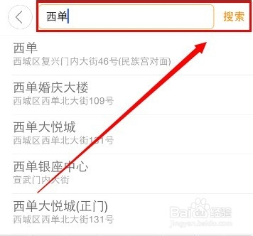 2、选择完专车之后,点击界面最下方的输入栏,我们在其中输入此次行程的目的地后点击搜索。同时在下方会出现一些快捷选项,方便我们进行选择。