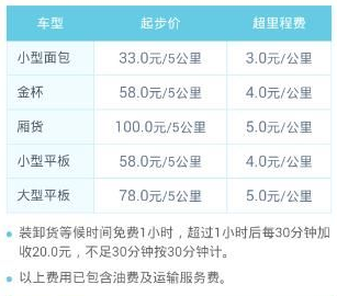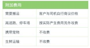所以计费标准如上图所示,首先是按照不同的车型,来制定不同的价格的。而且最主要的一点就是除开了按车计费以外还有按路程计费两种。关于附加费用和普通的货运公司一样。