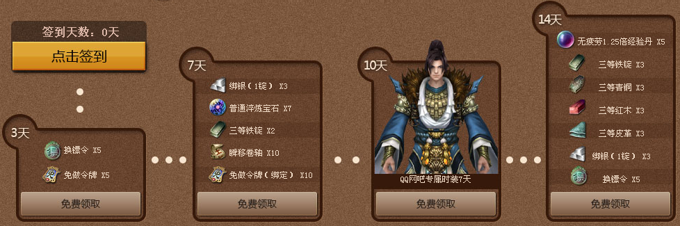活动期间,当天登录游戏10分钟以上的QQ网吧用户可以点击签到。签到天数达到特定天数时,可点击领取相应的奖励。