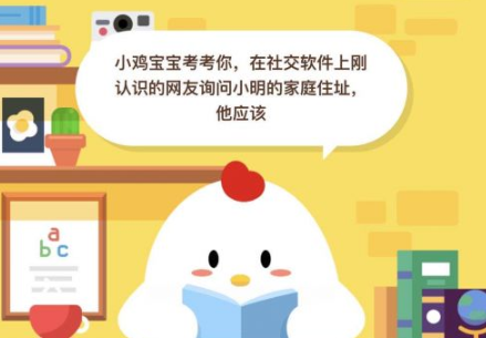 支付宝庄园小课堂4月9日的问题是,小鸡宝宝考考你,在上刚认识的网友询问小明的家庭住址,他应该怎么做呢?来看看吧。