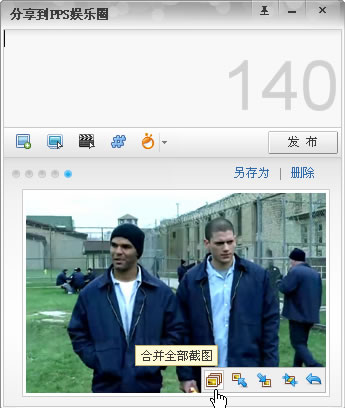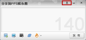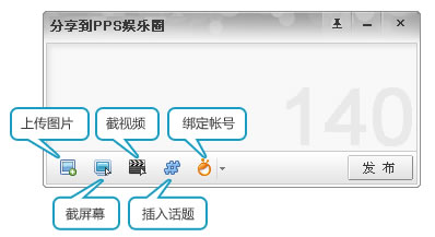 登录影音(1210以上版本)后,会在播放区快捷按钮中看到分享图标,点击弹出PPS微博发布工具。(官方下载)