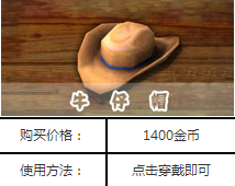 牛仔帽是在影视剧中很常见的帽子,戴上后非常有西部的感觉,牛仔帽本次更新正式上架终结者2商城,售价很便宜,性价比较高,可以用来日常。