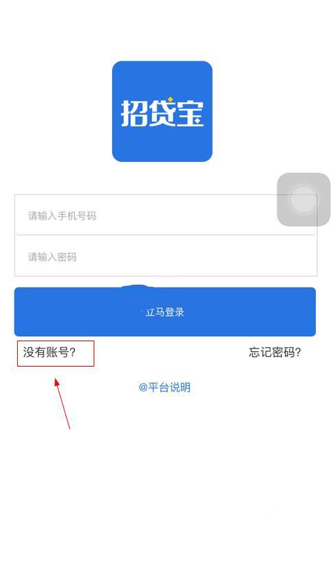1、打开招贷宝APP,在登录页面中点击“没有账号?”进入到注册页面;