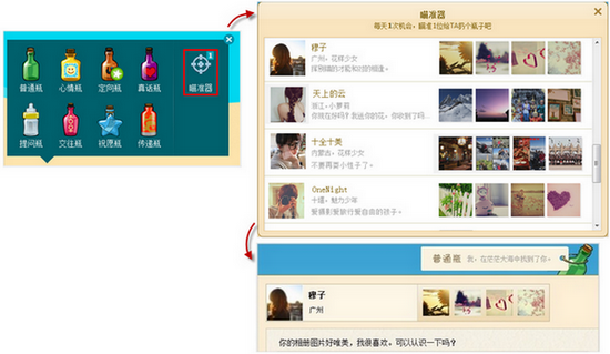 2、只有积分大于30的漂流瓶二级才可使用瞄准器的功能,每天只有一次机会。