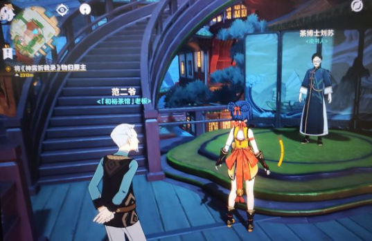 和说书人对话听他说书(多对话几次,听他说完为止)。
