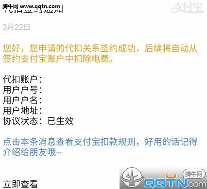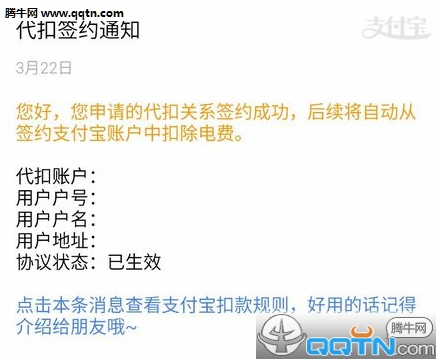 支付宝服务号会发消息进行提醒,已经签约成功。