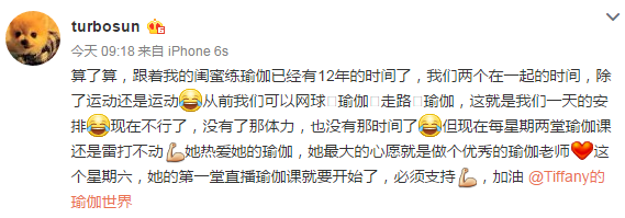 孙俪闺蜜@Tiffany的瑜伽世界,第一堂直播瑜伽课即将开始,小伙伴们可以来支持一下哦!