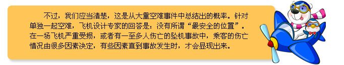 有些人觉得坐飞机随便哪个位置都一样,如果有空难了,随便你坐在哪里都是不安全的,有人则认为相对来说有比较安全的位置?对于这个问题,你怎么看?