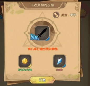 副本通关7-2后开放铁匠铺,小伙伴可在铁匠铺中打造不同类型的SR装备,但是打造装备也是需要材料的;